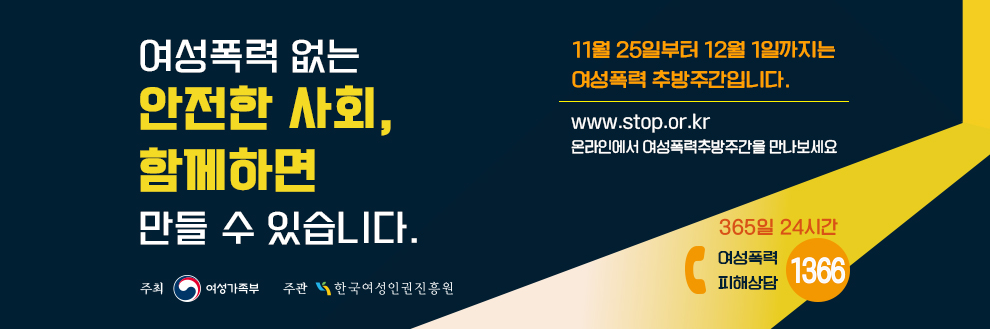 ¡°¿©¼ºÆø·Â ¾ø´Â ¾ÈÀüÇÑ »çȸ, ÇÔ²²ÇÏ¸é ¸¸µé ¼ö ÀÖ½À´Ï´Ù.¡±