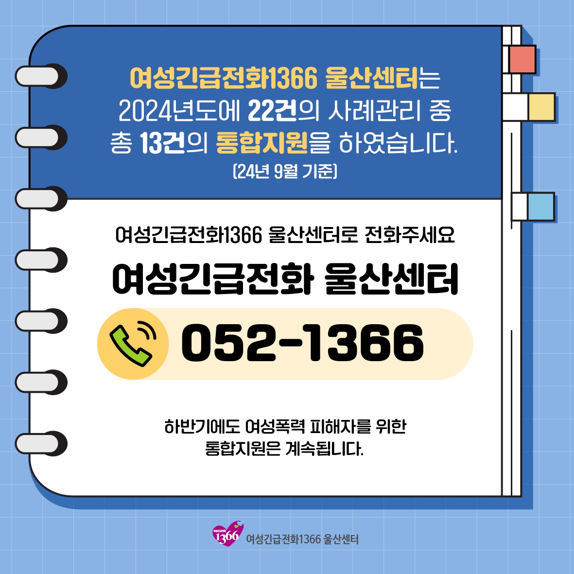 ¿©¼º±ä±ÞÀüÈ­1366 ¿ï»ê¼¾ÅÍ ¿©¼ºÆø·ÂÇÇÇØÀÚ ±¤¿ª´ÜÀ§ ÅëÇÕÁö¿ø ü°è±¸Ãà »ç¾÷ ¾È³»